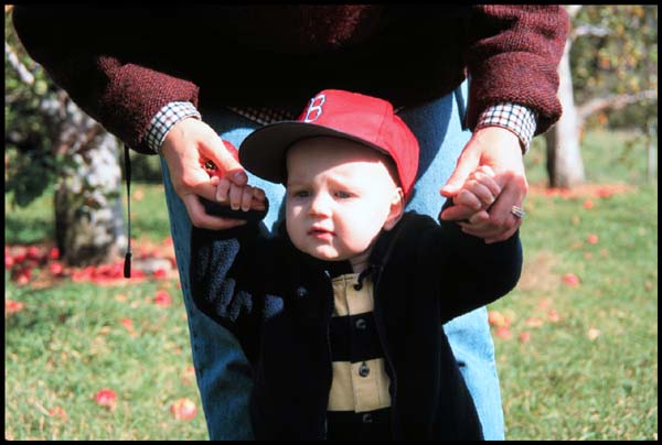 Since everybody else was having so much fun picking apples, Andrew didn't want to just sit around. He got to practice walking and exploring, all with a little help from friends and family.