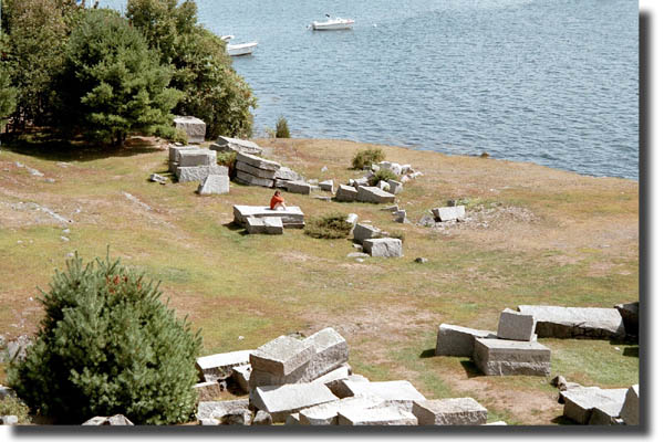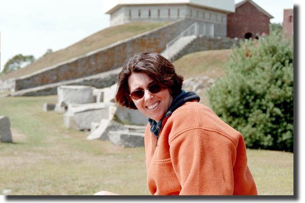 We closed the trip by stopping at Fort McClary, on the coast of Kittery. Jennifer and I had been there once before with Matthew Waterman, on a cold winter day. It was nice to come across it again. Jennifer sat in the sun while I explored what there was to see. I ran into some tourists who were visiting all of the forts along the coast of Maine -- and there seem to be a bunch of them. Naturally, they assumed I was doing the same thing. There's not much to Fort McClary, but what's there is pretty striking. The Fort was active from the Revolutionary War through World War I, and the blockhouse in these pictures dates from 1844. There are also some brick shells of other buildings and the foundations of a couple more. If you're interested, here are some great old photos and history of the Fort.