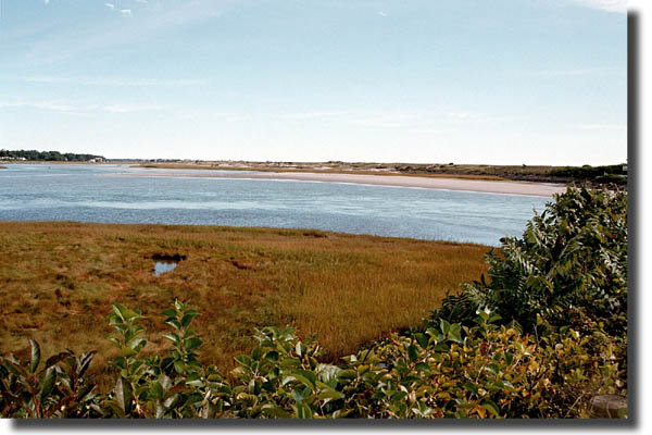 Oqunquit Beach is really a long strip of land, behind which is the entrance to the Ogunquit River. As the tides come in and out, the sand and water change dramatically, creating small islands and later taking them away.