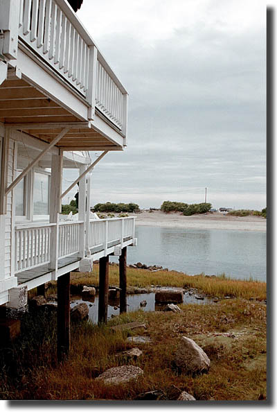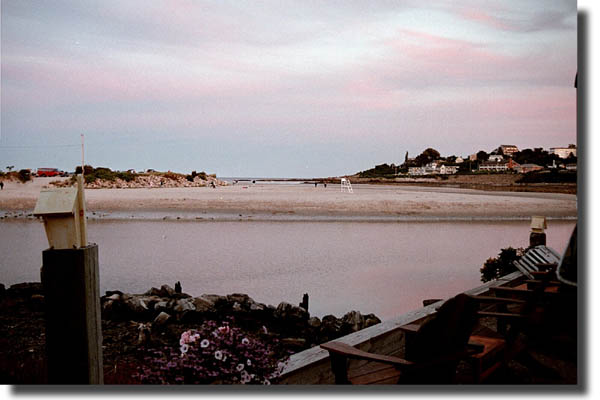 Jennifer started school again at the beginning of September, after taking the summer off. We decided to end the summer on a relaxing note, so we headed to Ogunquit, Maine for Labor Day weekend. Naturally, we had to book it a while in advance, and even then we had trouble finding a place, but what we ended up with was just about perfect. We stayed at a small place called the Above Tide Inn, which was located right at the end of Beach Street, on the water. We couldn't have asked for a better location. Our room didn't have a water view, but the deck outside our room did, and besides, we weren't there to hang out in the room. We ended up having such a great time that we decided to go back next year, and we even booked the room. One of the best things about being by the water was seeing the way both the light and the tides altered the landscape. The light was beautiful, reflecting off of the water and the buildings and trees at the water's edge, not to mention the sandals that we left sitting on the sand.